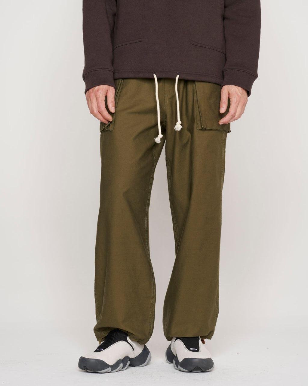 - The Military Jungle Pant is a cargo style, constructed in a cotton twill quality. Features an elastic waist, adjustable hem cuffs, and buttoned cargo pockets at the sides and back. Finished with branded buttons.