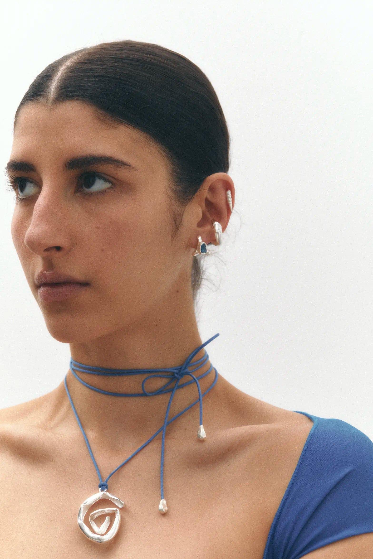 - The Simuero El Salto Earring is a 925 Recycled Sterling Silver ear piercing with Blue Topaz stone.