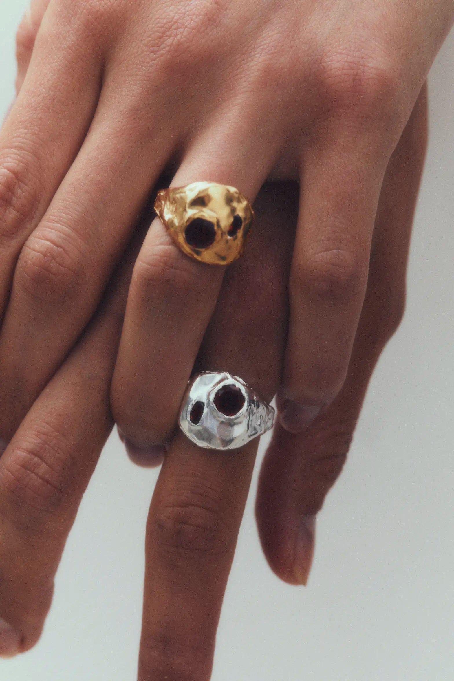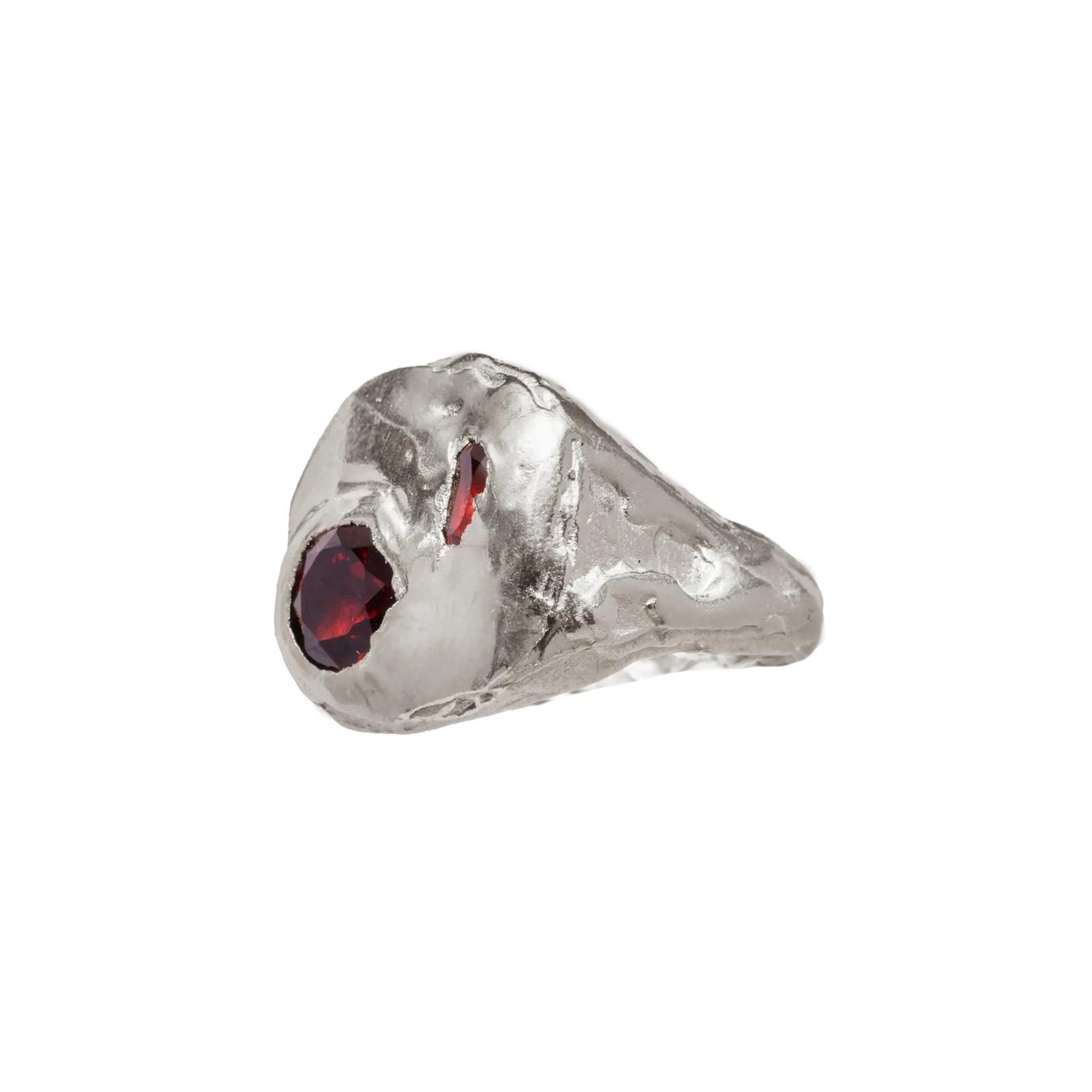 - The Coco Ring is a handmade recycled silver ring with red garnet natural stone.