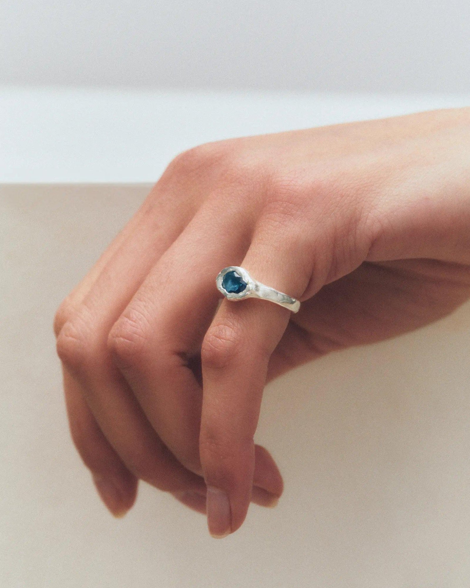 - The Simuero Faro Formentor Ring in Silver/Blue is a handmade recycled 925 sterling silver ring with a blue Topaz Cubic Zirconia.